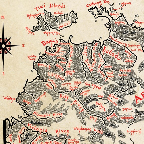 Hand Drawn Northern Territory Map Tolkien Inspired Fantasy Etsy